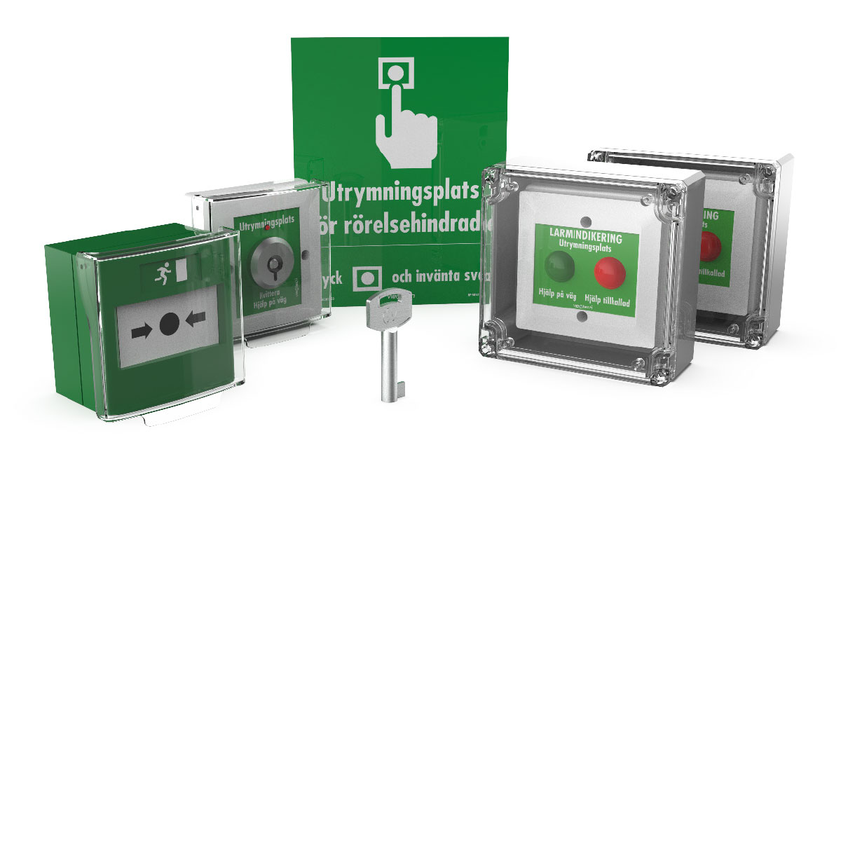 Med Utrymningsplats art 50142415 kan man larma och den larmande personen kan se att larm har avgivits samt se kvittens att hjälp är på väg.
